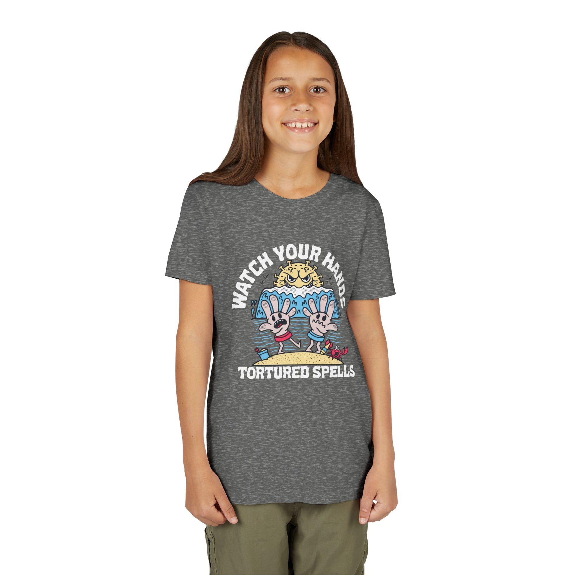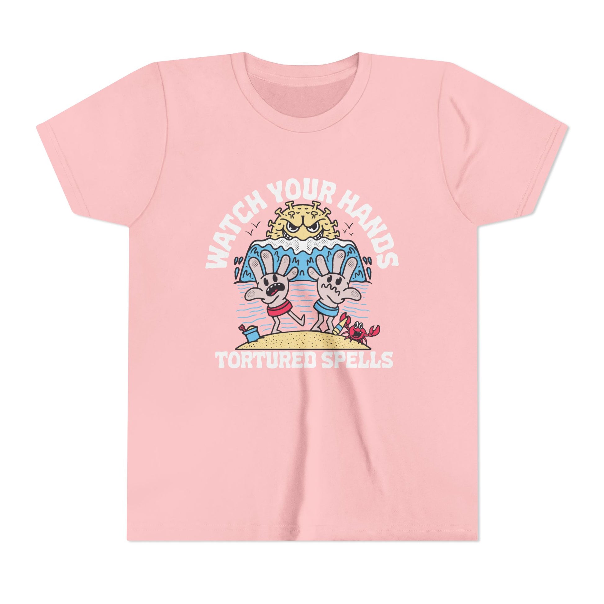 Watch Your Hands (Wash Your Hands, Coronavirus Reference), Youth, Black/White Short Sleeve Tee